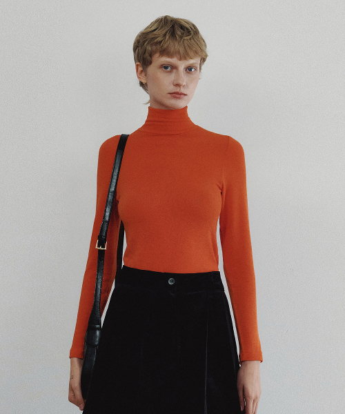 퓨어 슬림 터틀넥 티셔츠 - 레드