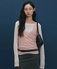 브이넥 나시 레이어드 티셔츠 - 아이보리/핑크