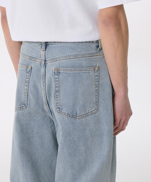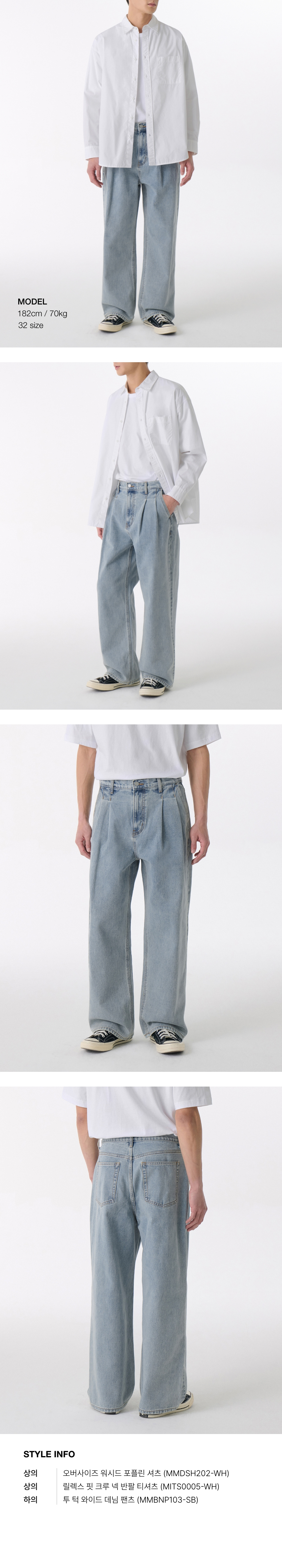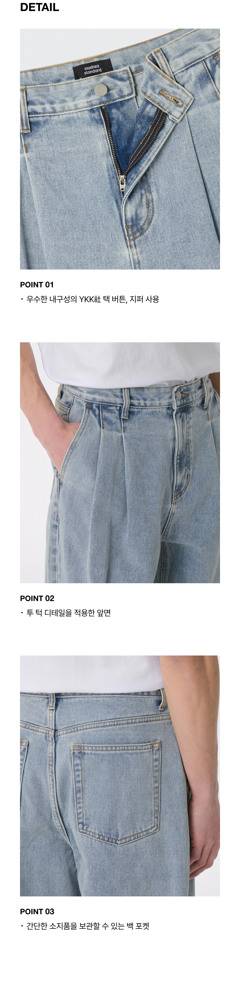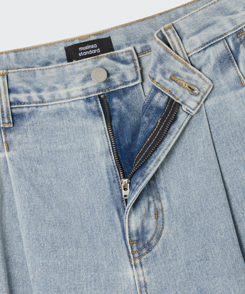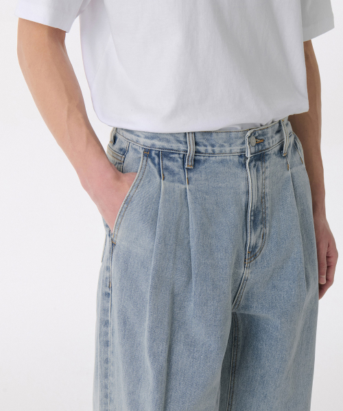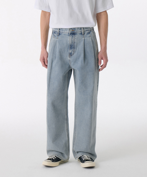 투 턱 와이드 데님 팬츠 [라이트 인디고]