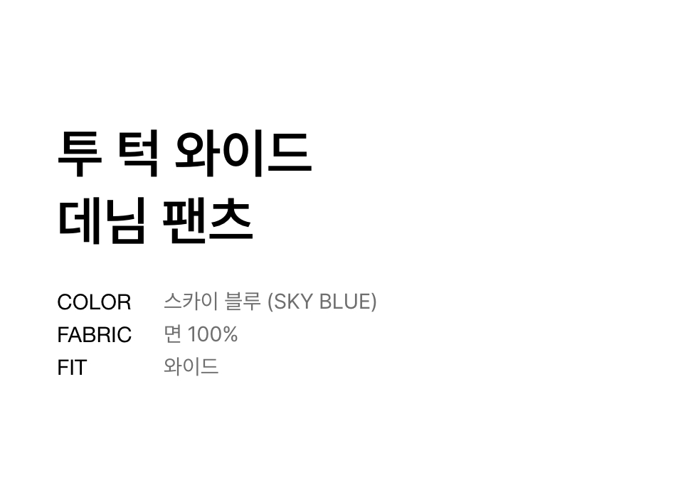 투 턱 와이드 데님 팬츠 [스카이 블루]