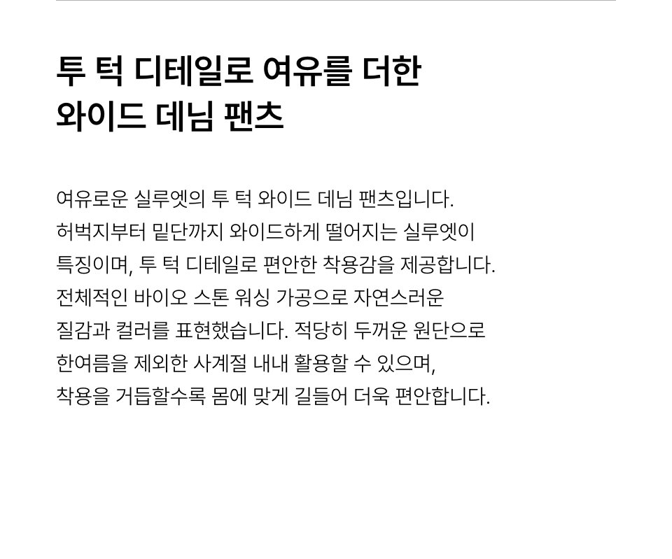 투 턱 와이드 데님 팬츠 [로우 블랙]