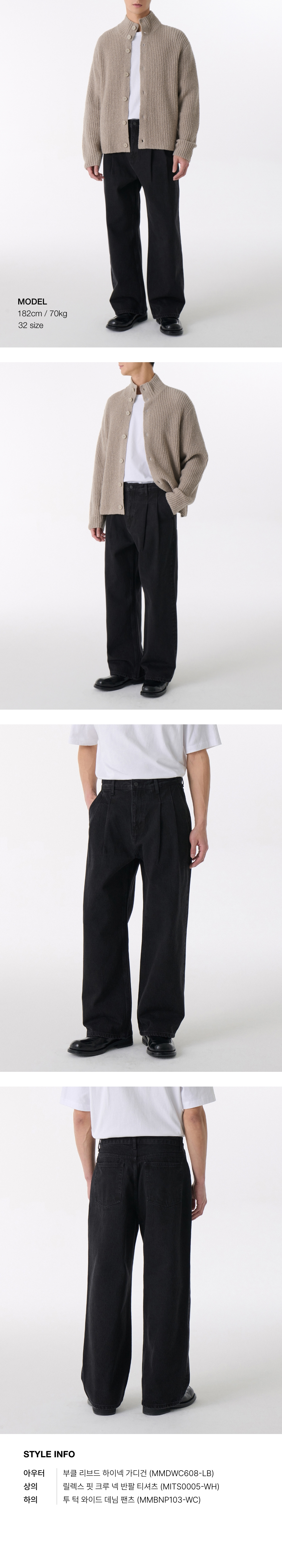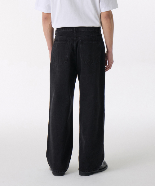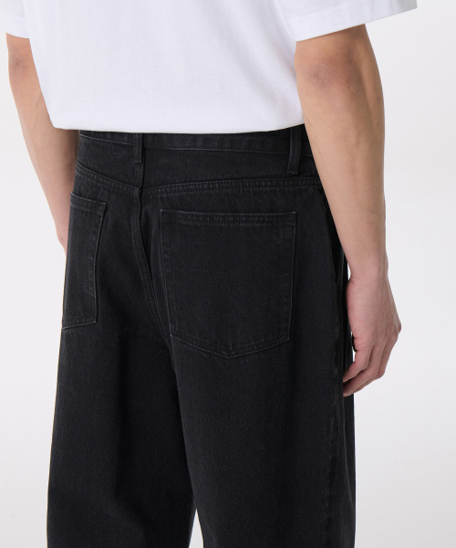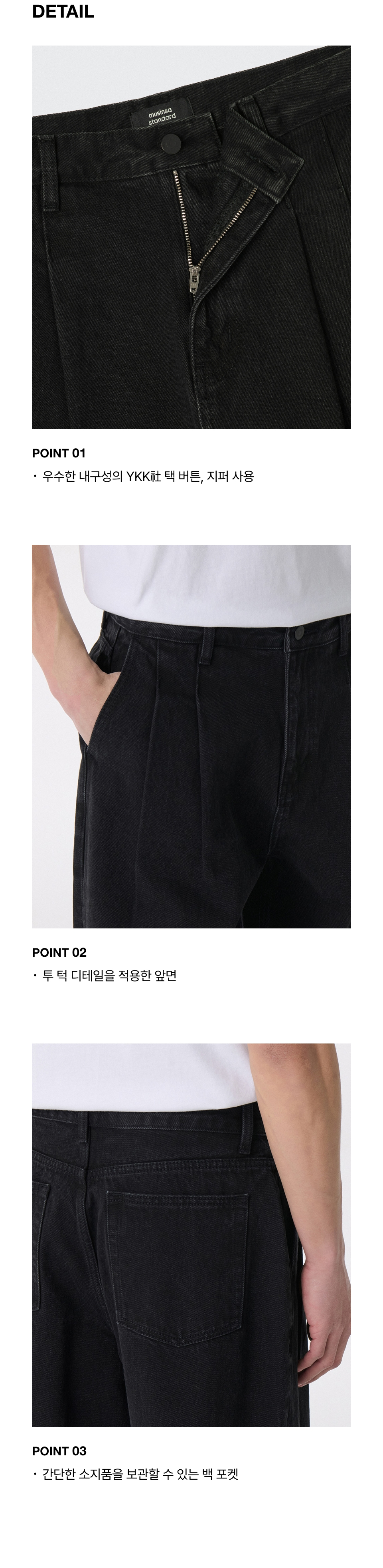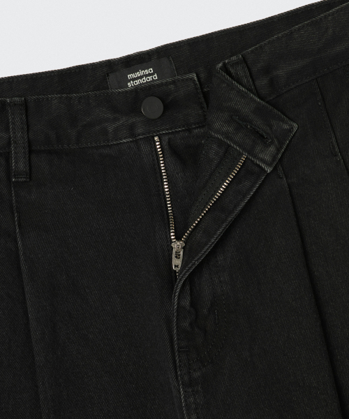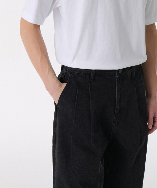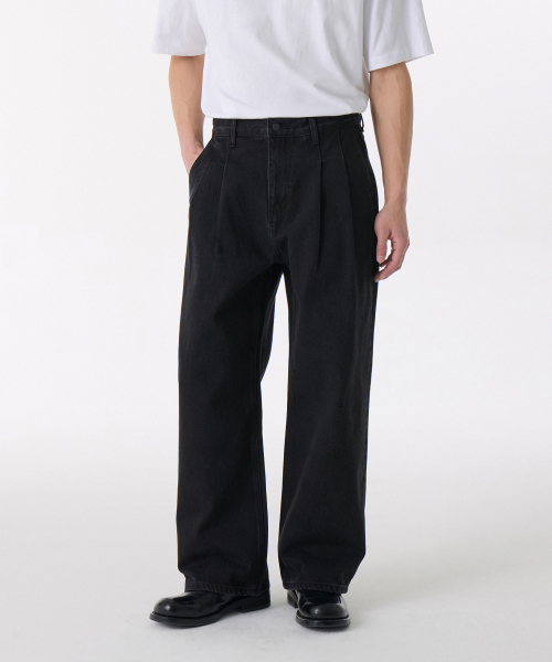 투 턱 와이드 데님 팬츠 [워시드 블랙]
