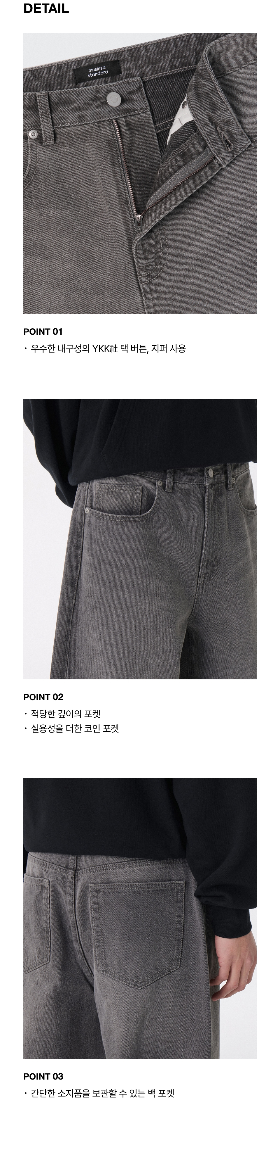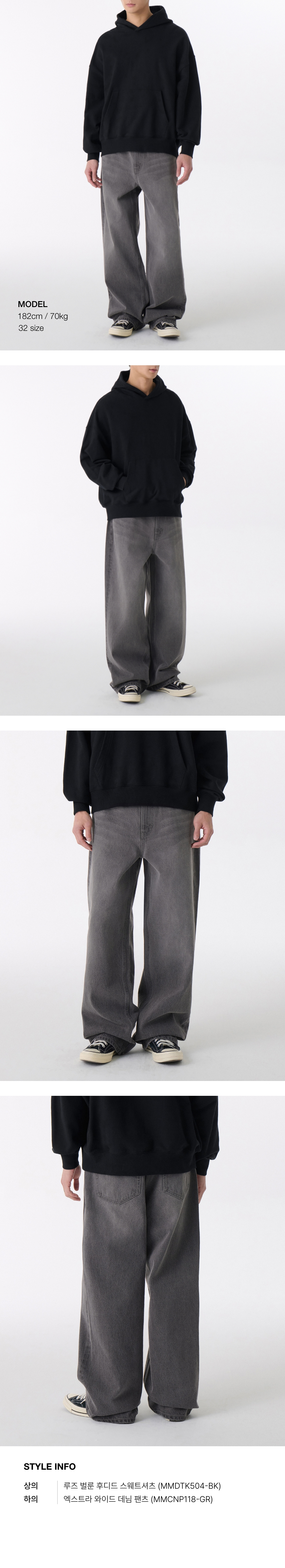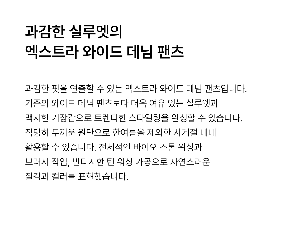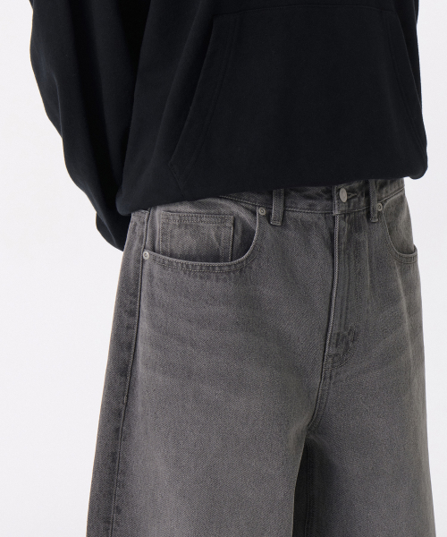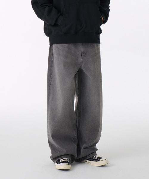 엑스트라 와이드 데님 팬츠 [워시드 블랙]