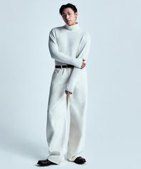 더블 니트 원 턱 와이드 라운지 스웨트 팬츠 [미디엄 그레이]