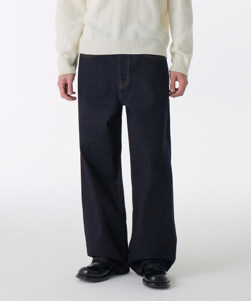 빅 와이드 데님 팬츠 [딥 인디고]