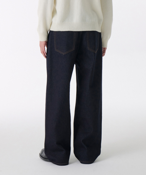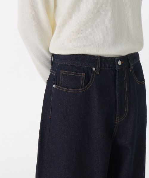 와이드 데님 팬츠 [딥 인디고]