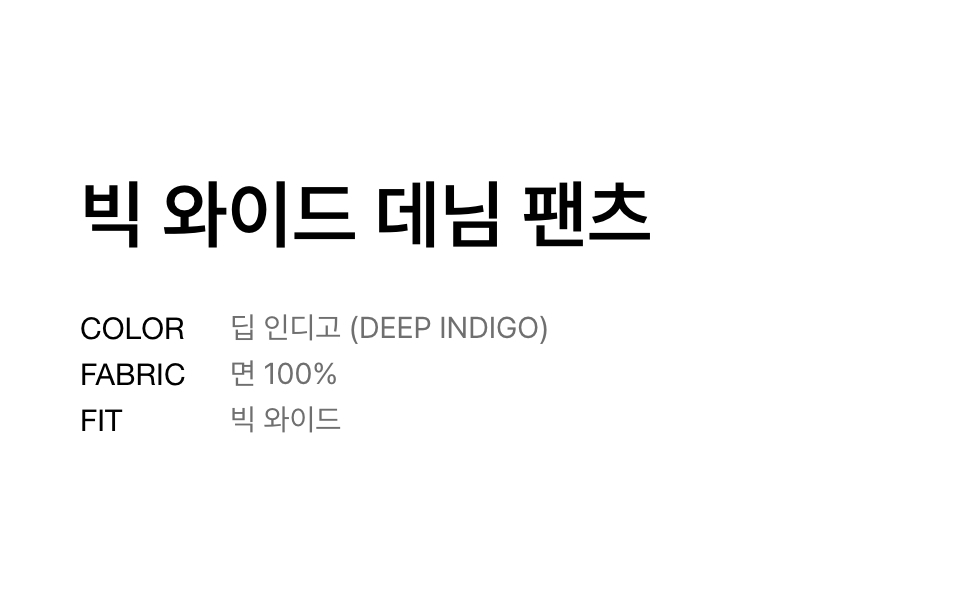 빅 와이드 데님 팬츠 [미디엄 인디고]