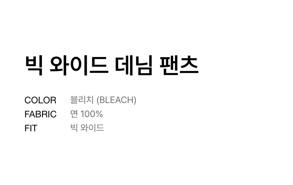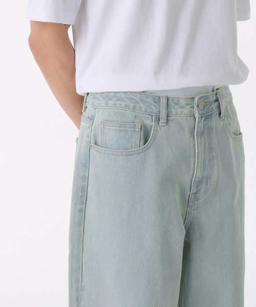 빅 와이드 데님 팬츠 [블리치]
