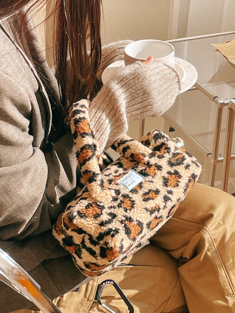 호피 덤블 미니 토트 핸드백