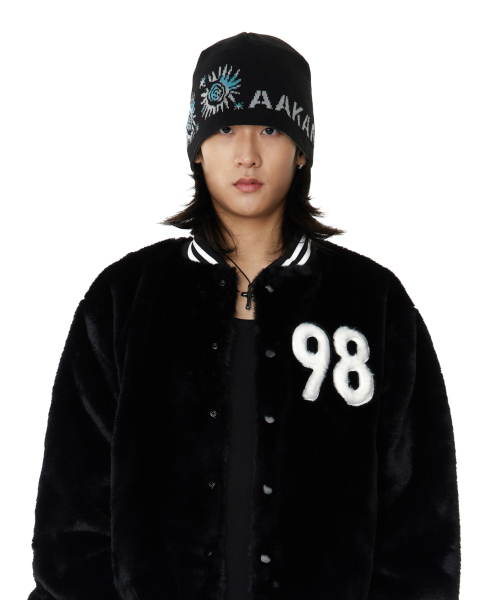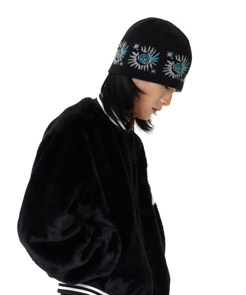Small Sun Jacquard Beanie (Black)