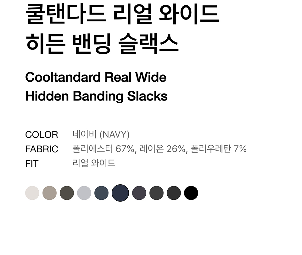 [쿨탠다드] 리얼 와이드 히든 밴딩 슬랙스 [네이비]