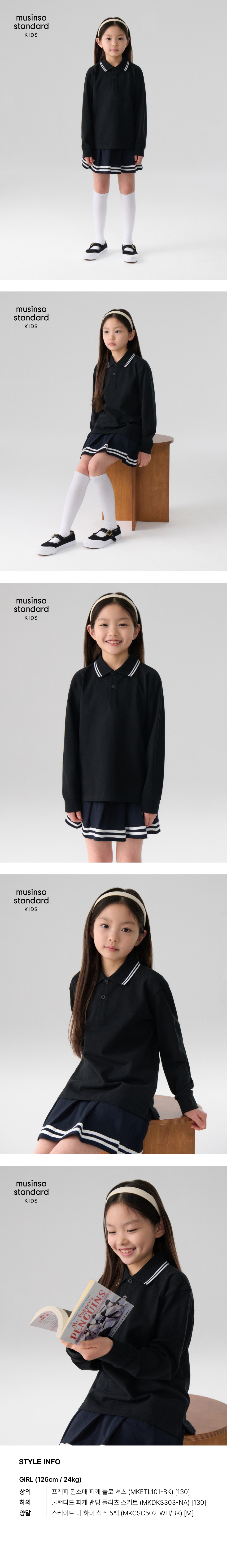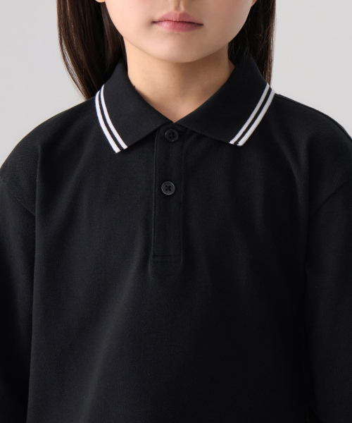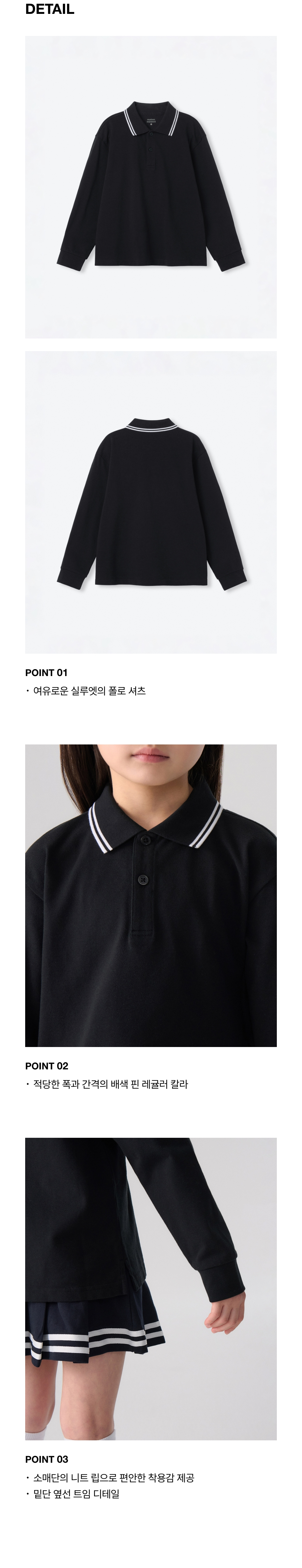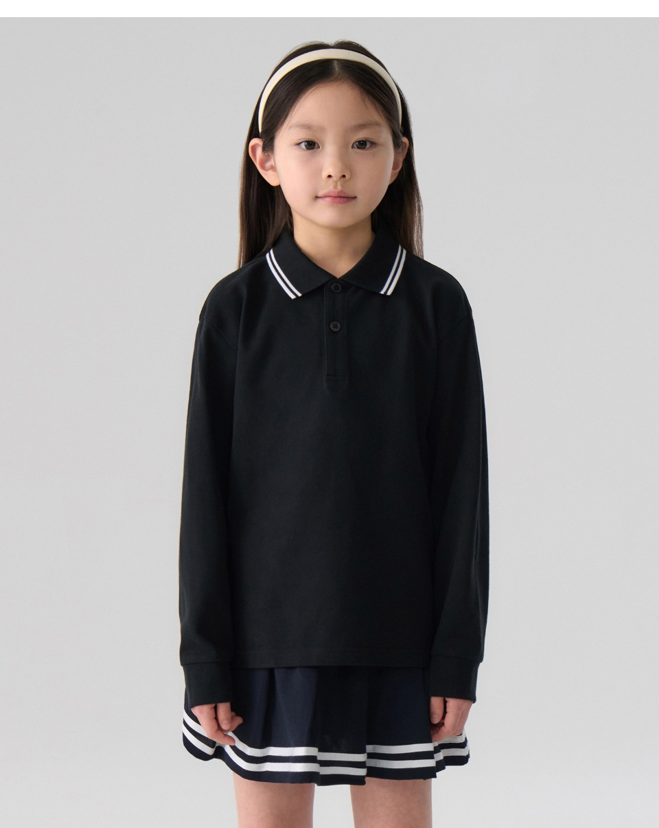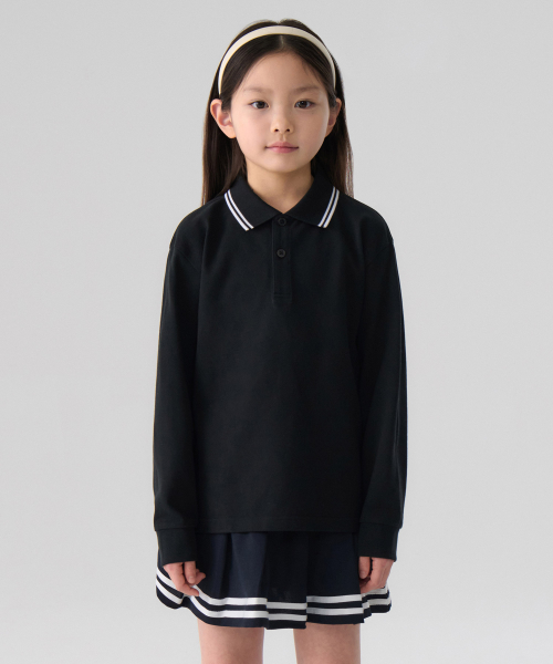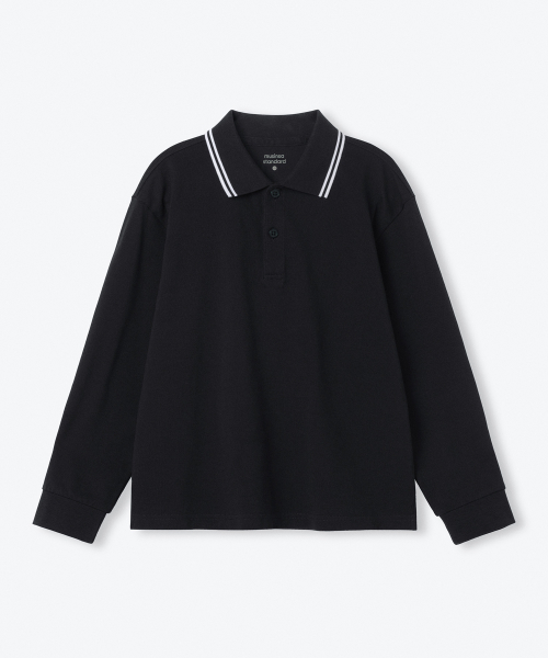 프레피 긴소매 피케 폴로 셔츠 [블랙]