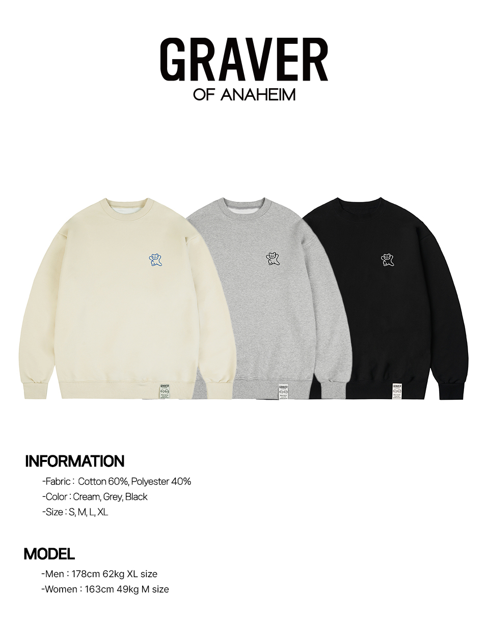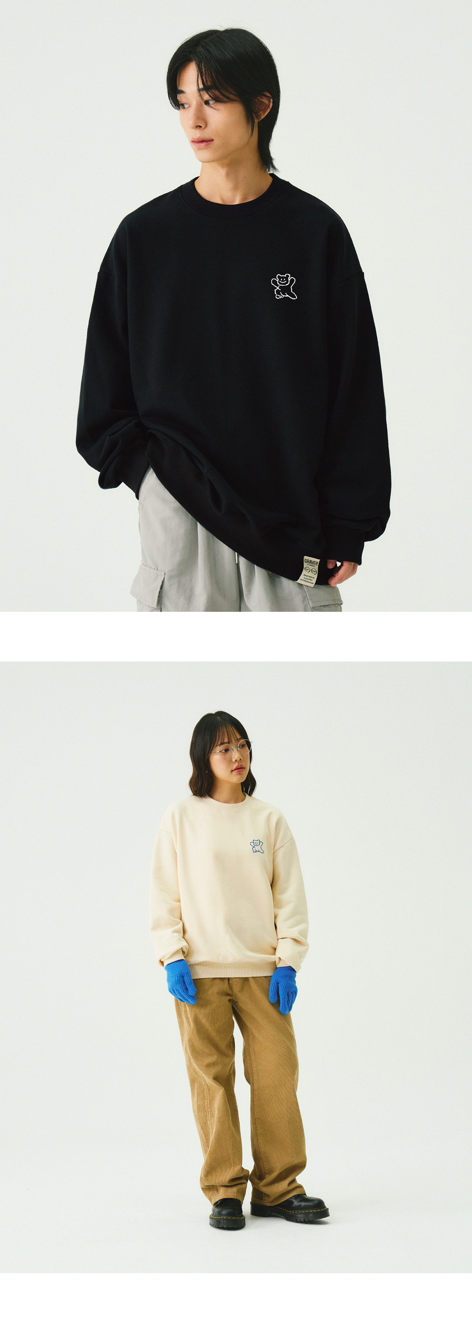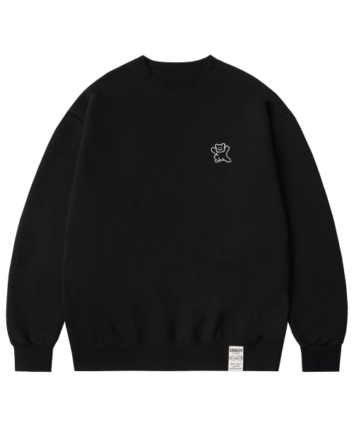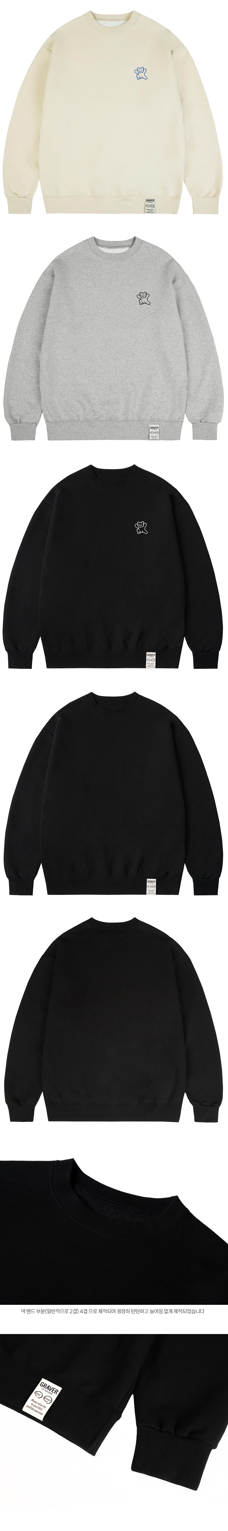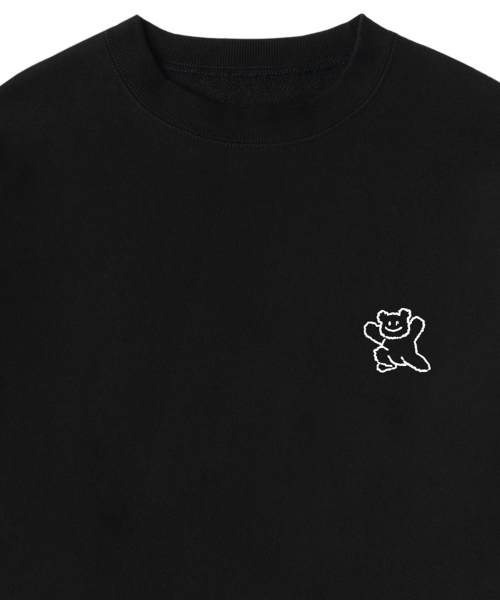 [UNISEX]스몰 라인 베어스마일 맨투맨_블랙