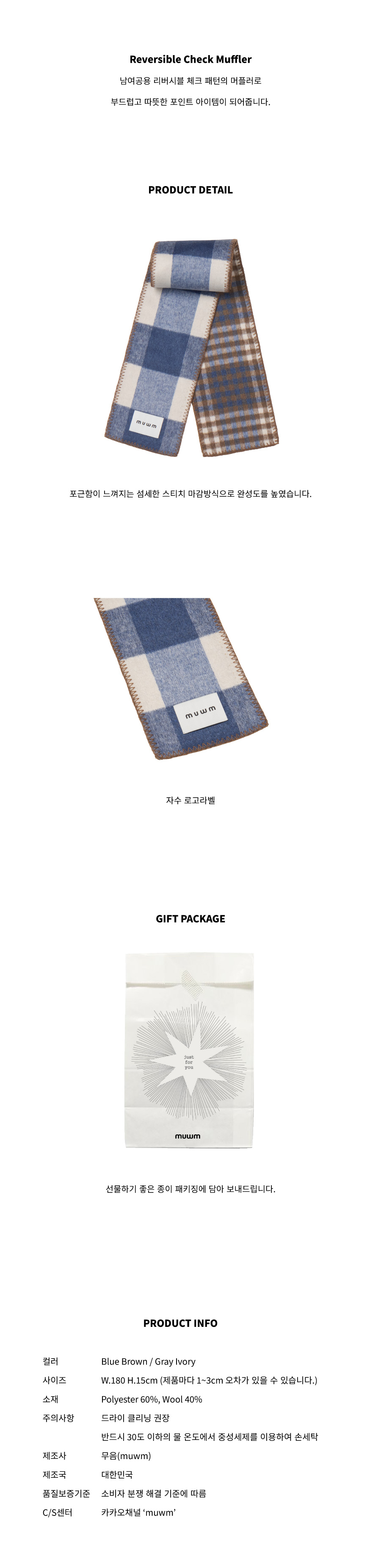 리버시블 체크 머플러 Reversible Check Muffler (Blue Brown)