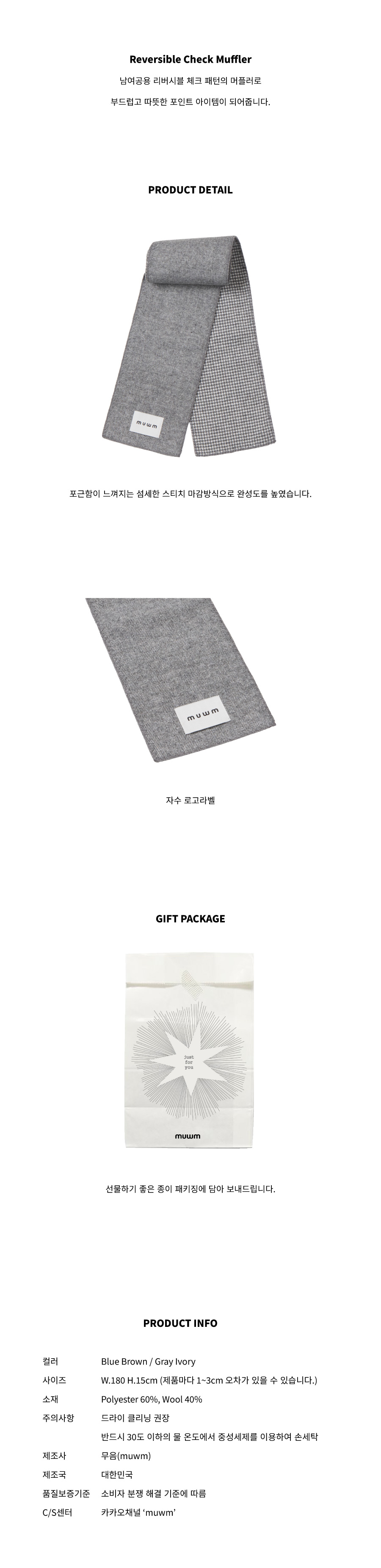 리버시블 체크 머플러 Reversible Check Muffler (Gray Ivory)