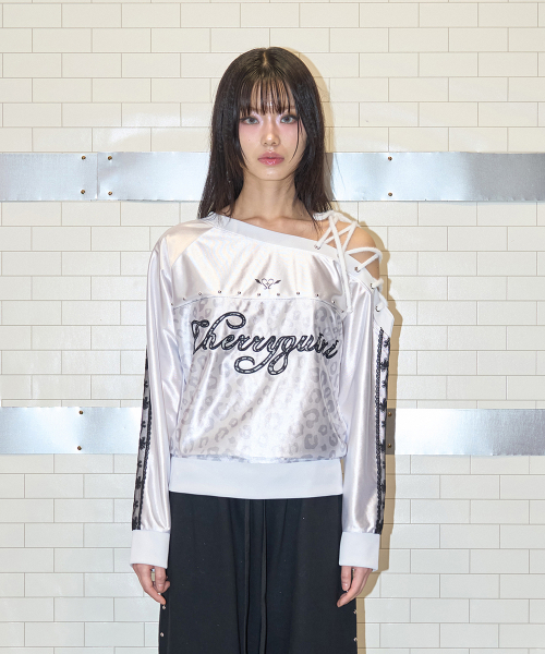 - 어깨라인에 아일렛&스트링 레이스업 디테일로, 사이즈 조절 가능