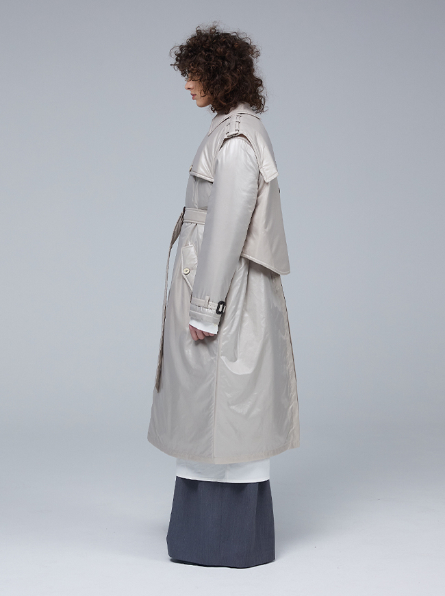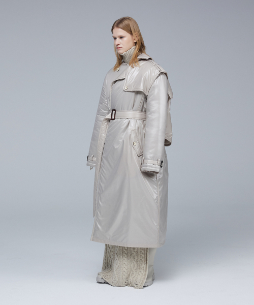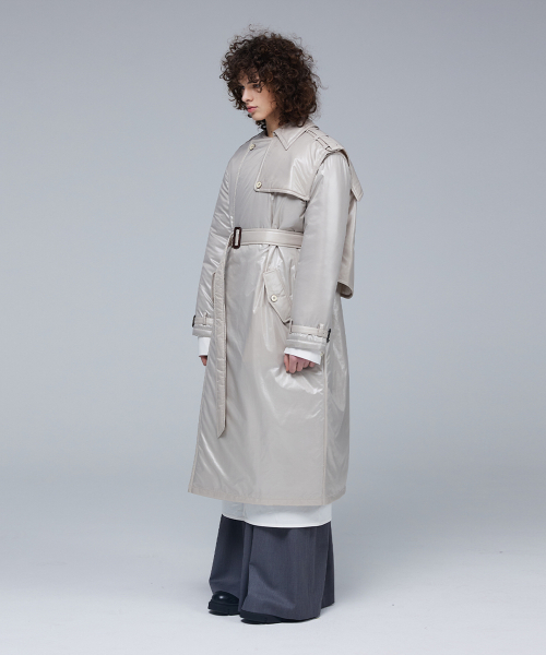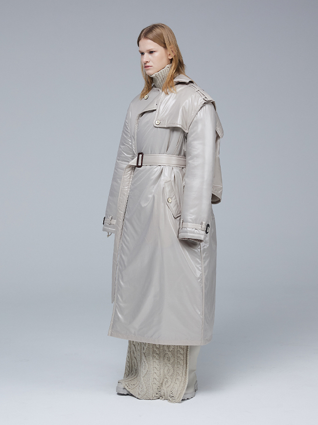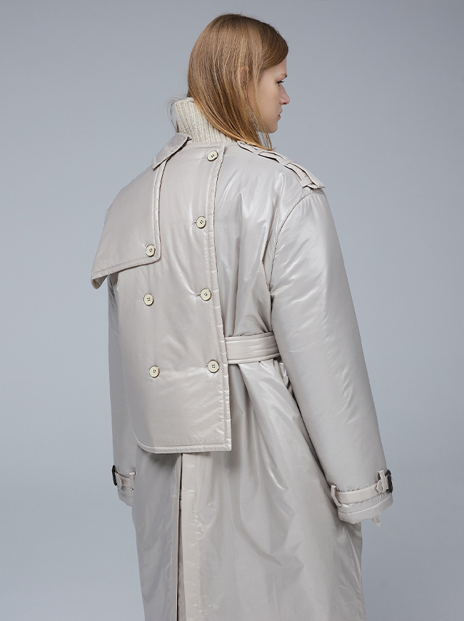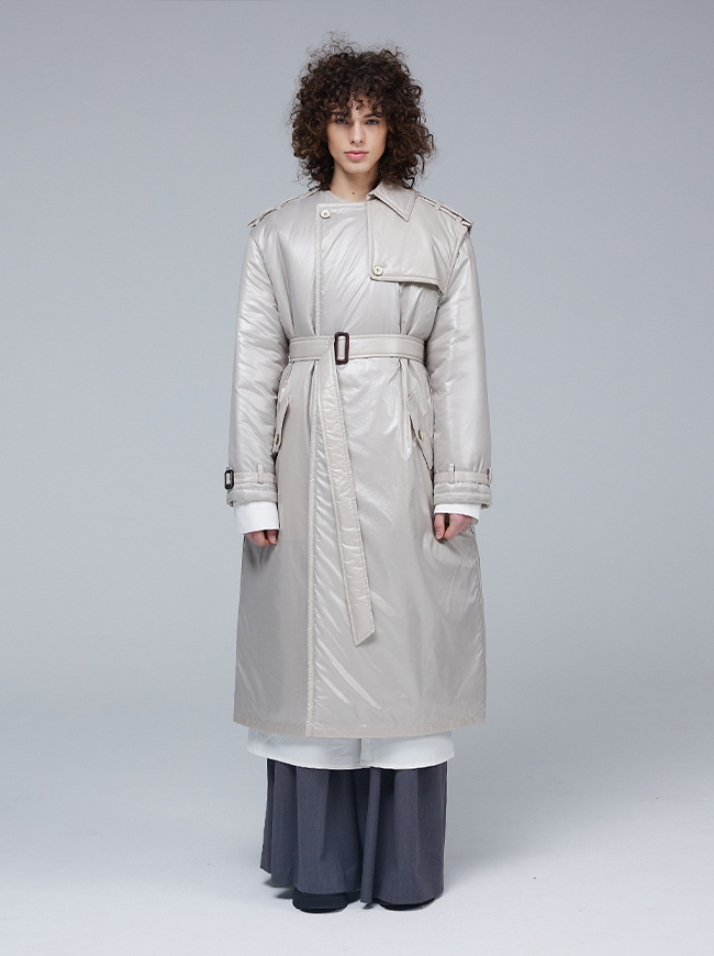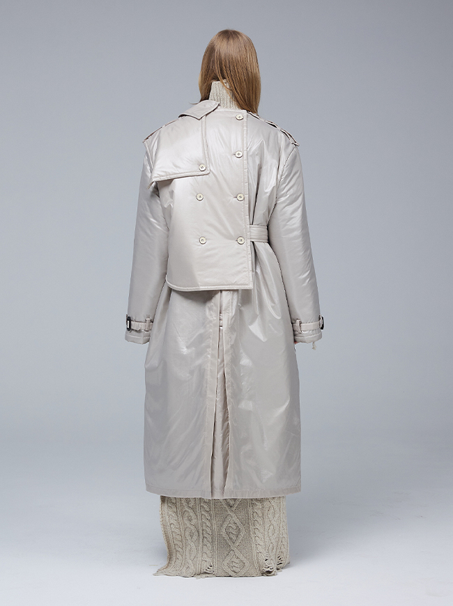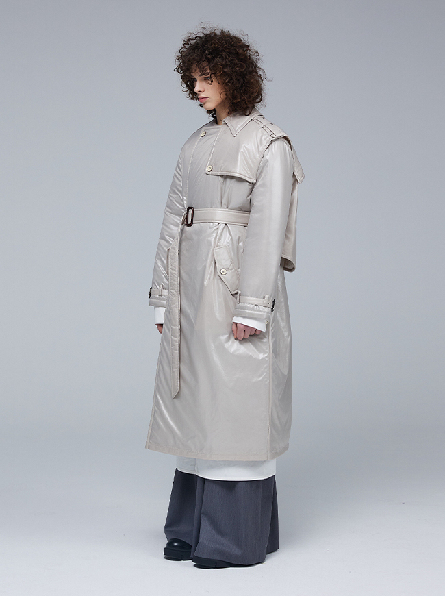 글로시 패딩 트렌치 코트