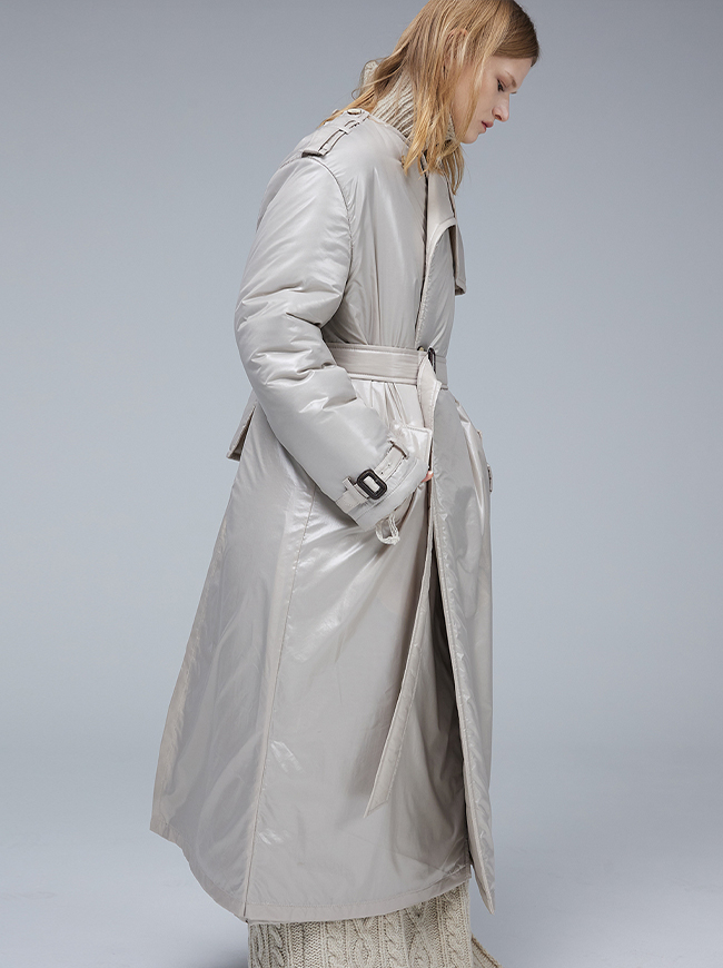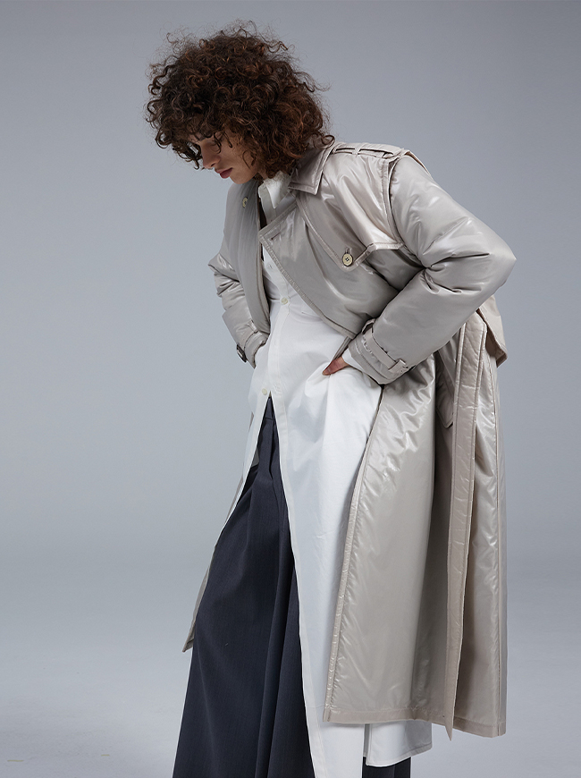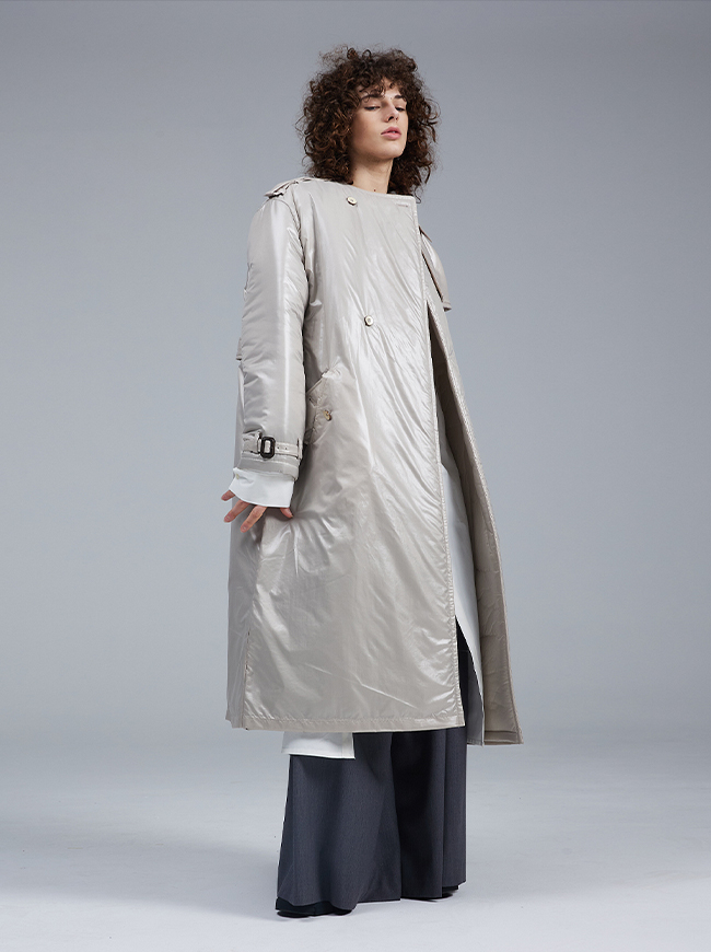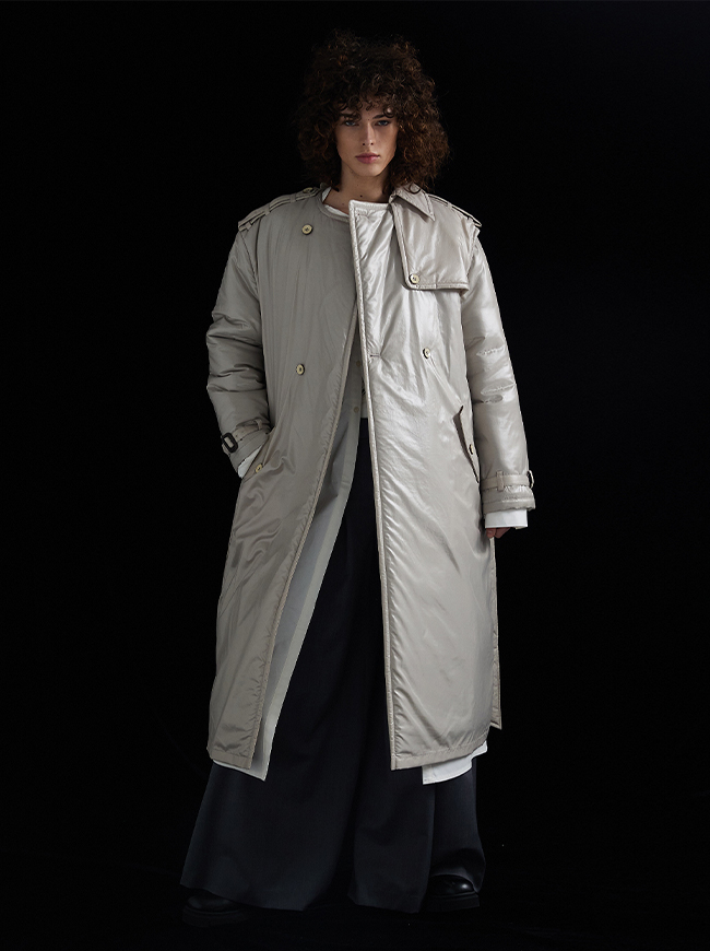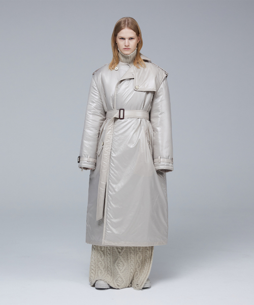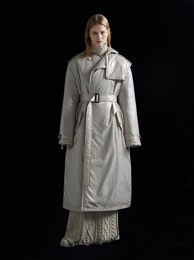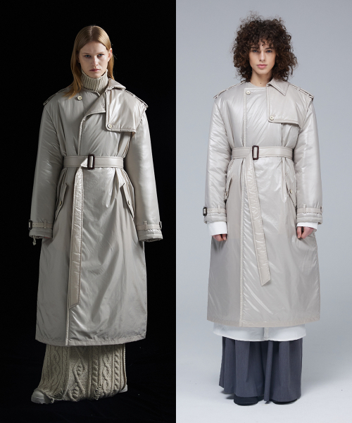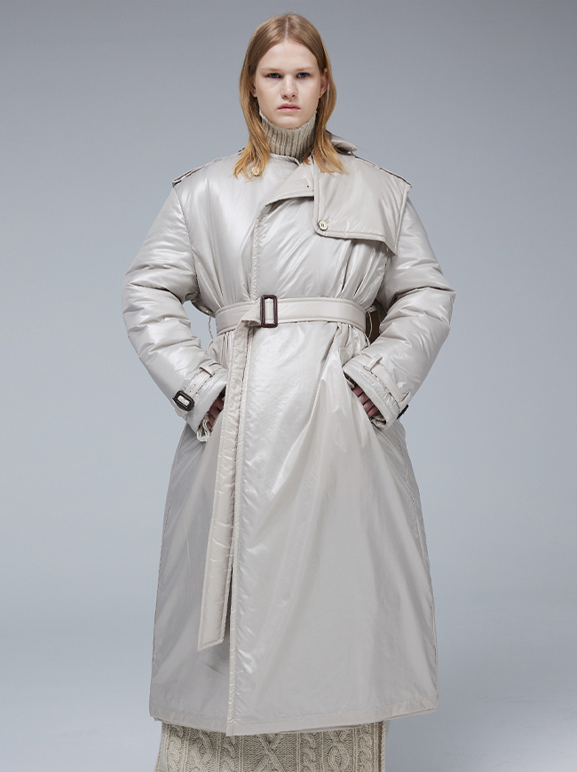 글로시 패딩 트렌치 코트