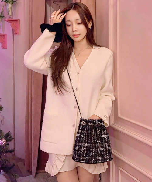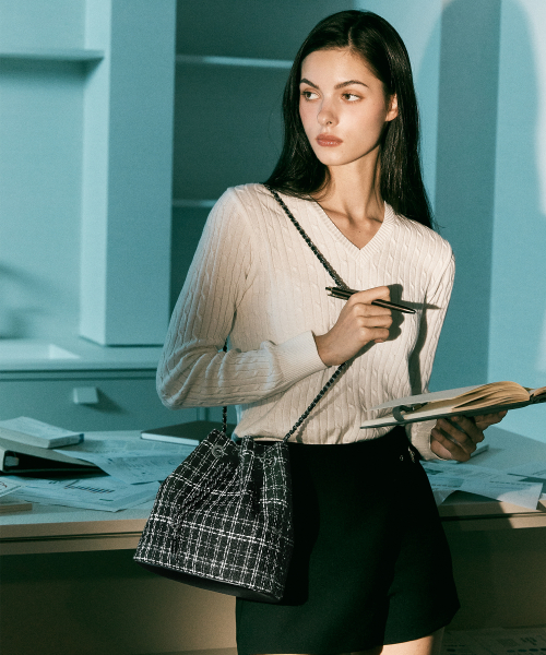 칸 트위드 체인 버킷 크로스백