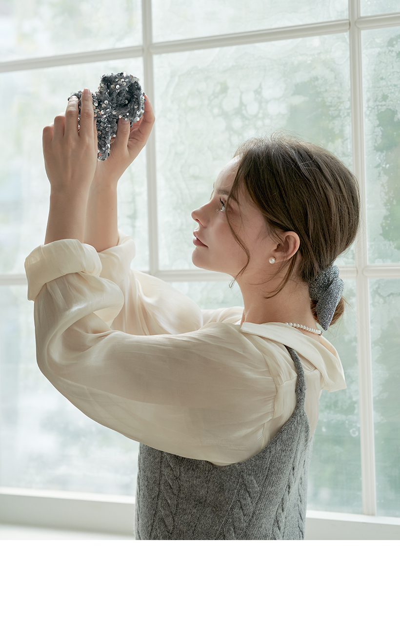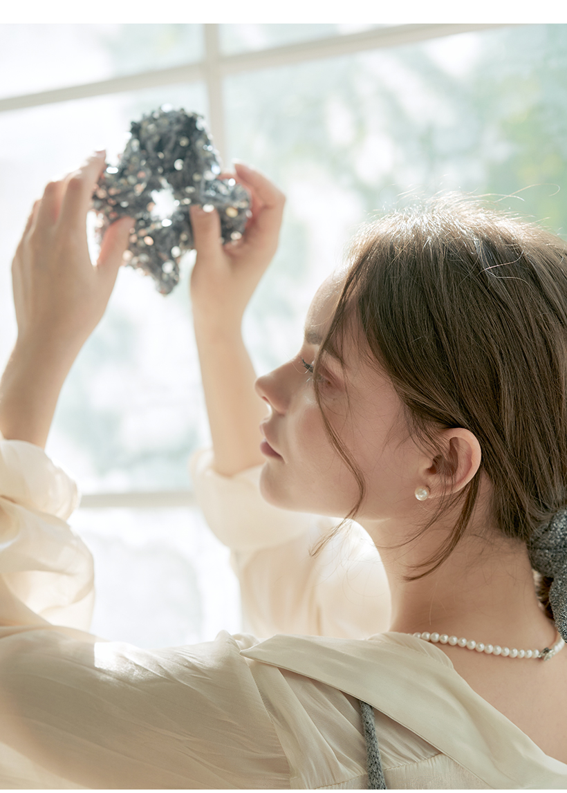 엘리자베스 펄 스크런치_실버 / ELIZABETH PEARL SCRUNCH_SILVER