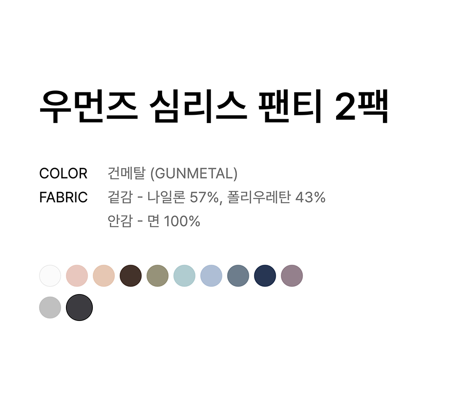 우먼즈 심리스 팬티 2팩 [건메탈]