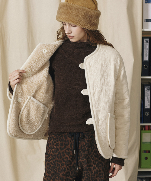 퍼 & 플라워 레이스 리버서블 자켓 [크림]