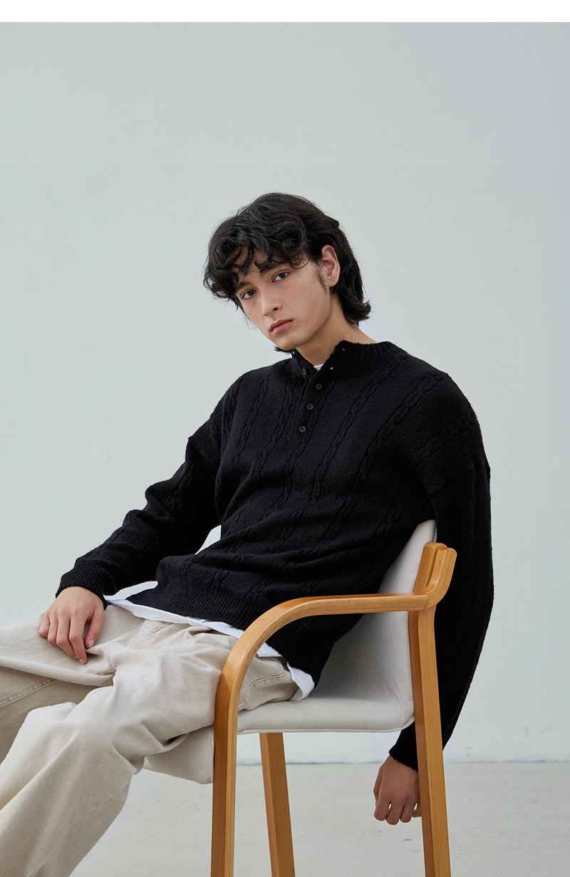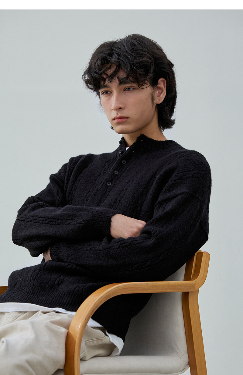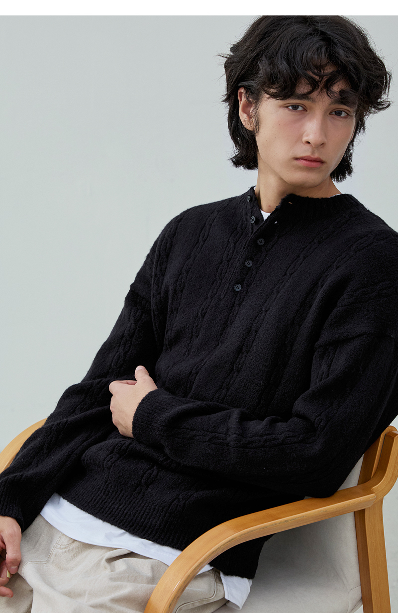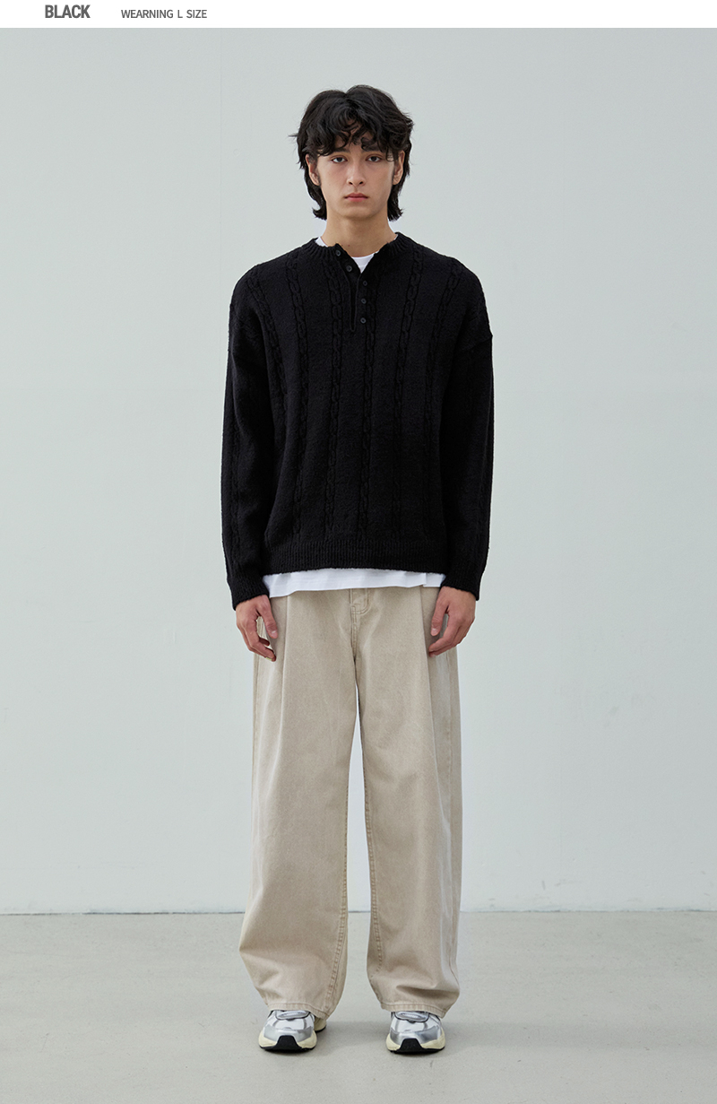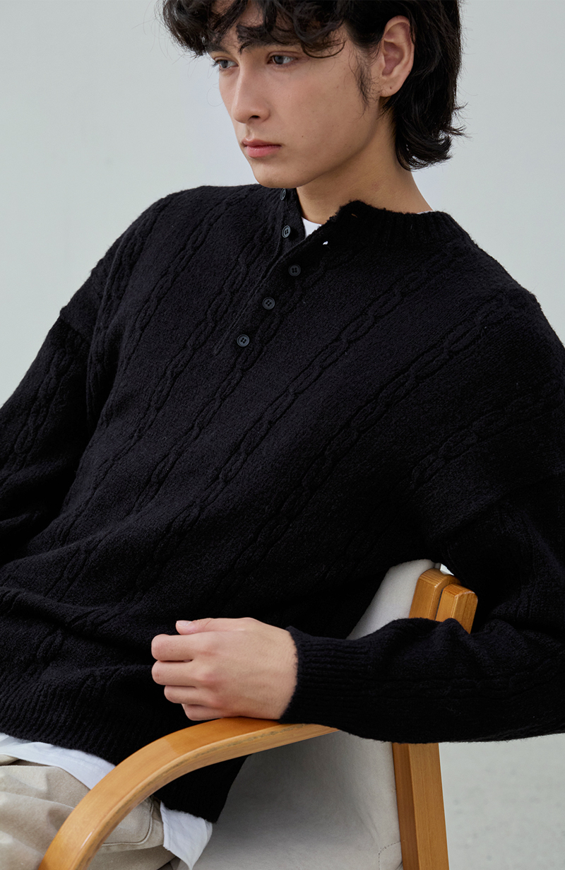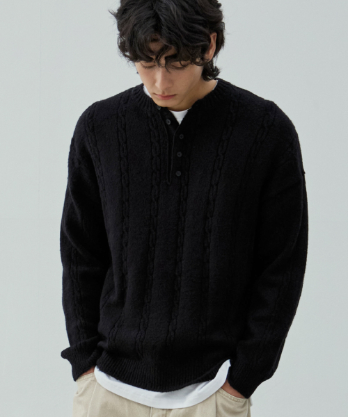 소프트 헨리넥 라운드 긴팔 니트 [블랙]