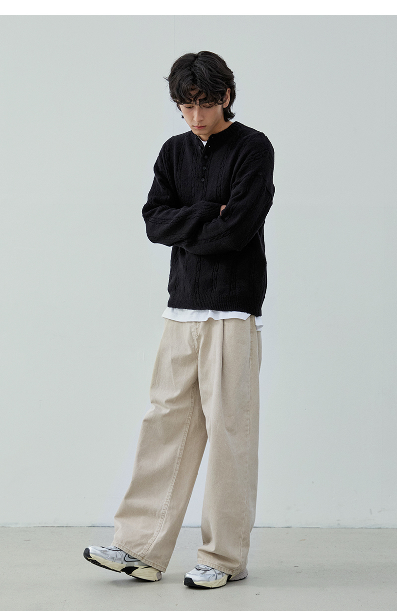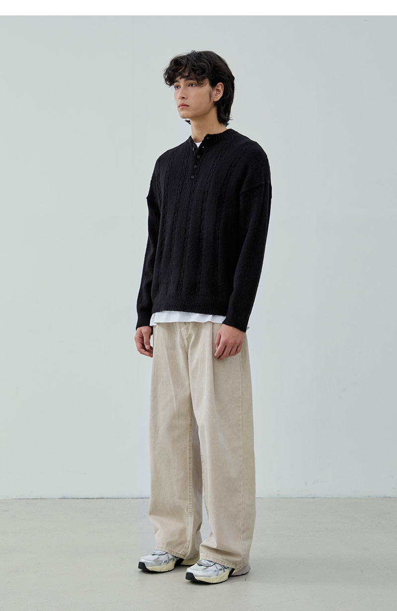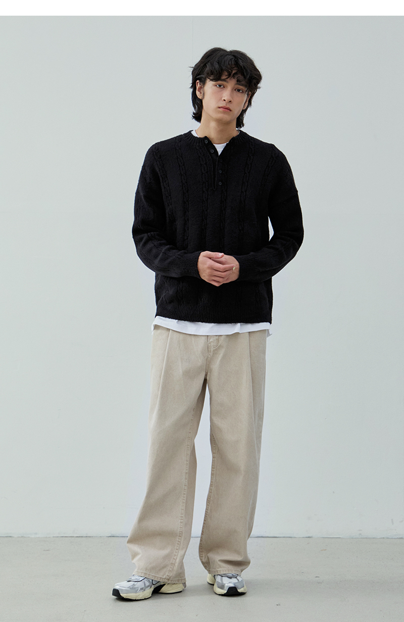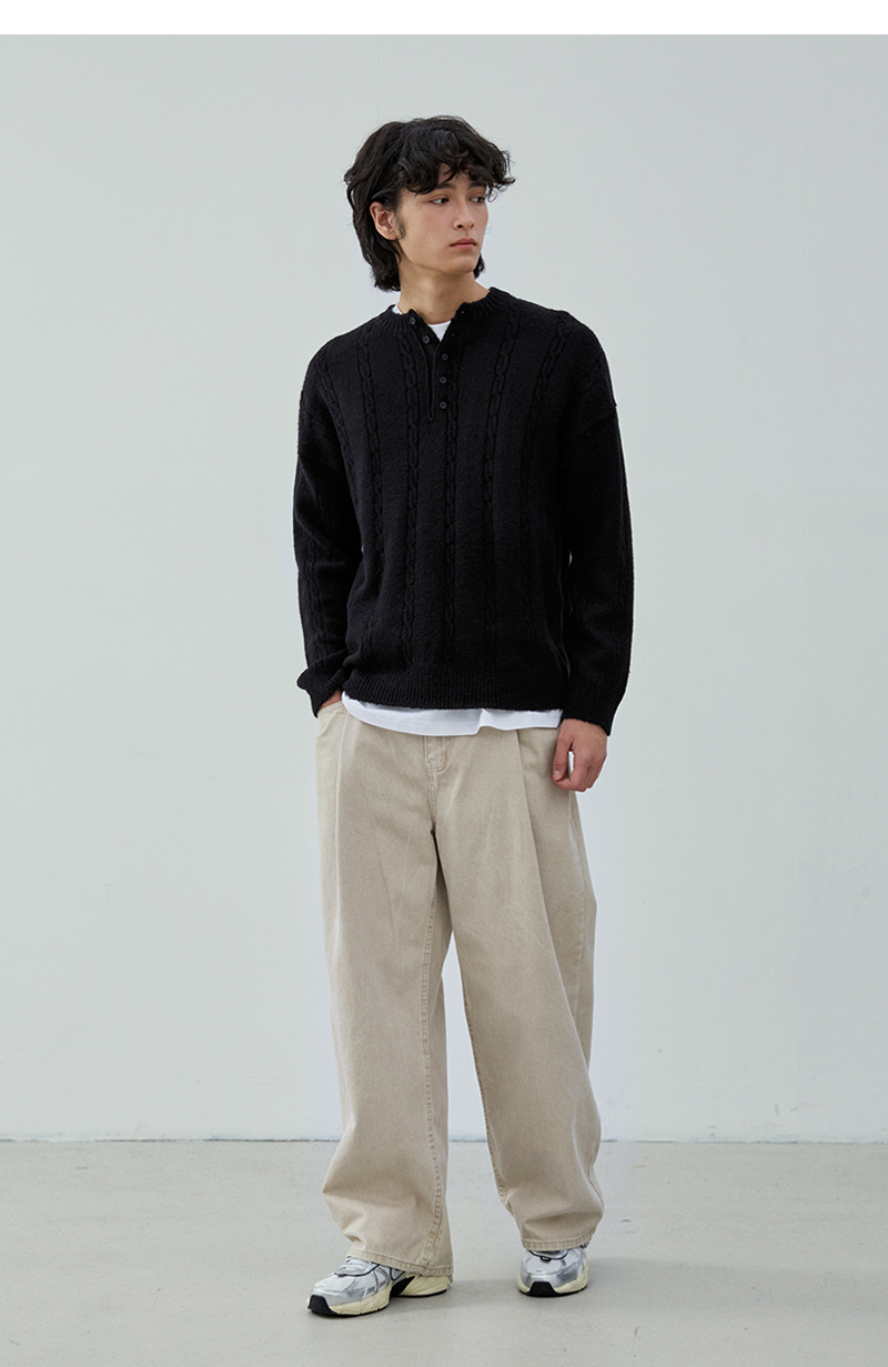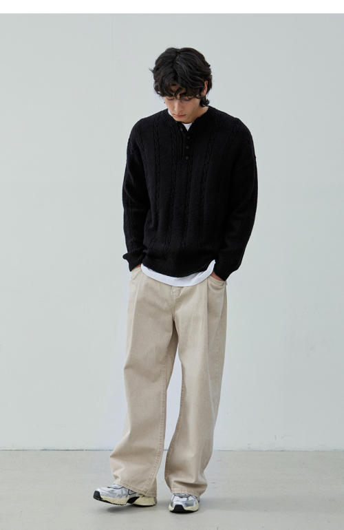 소프트 헨리넥 라운드 긴팔 니트 [블랙]