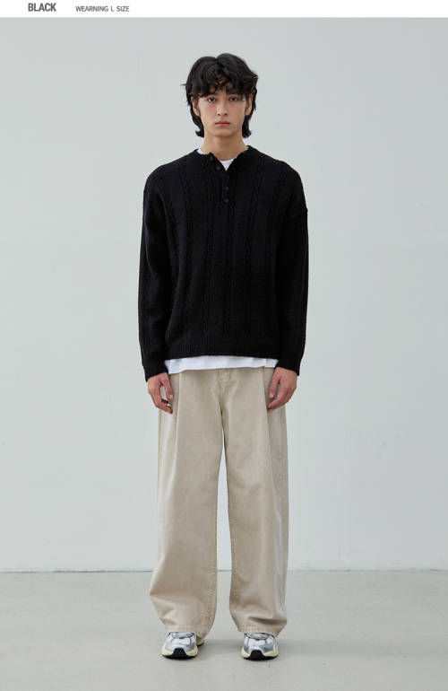 세미 크롭 헨리넥 니트 티셔츠_4 COLOR