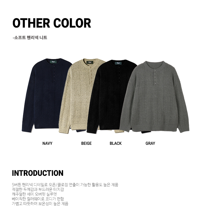 소프트 헨리넥 라운드 긴팔 니트 [4color]
