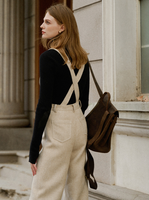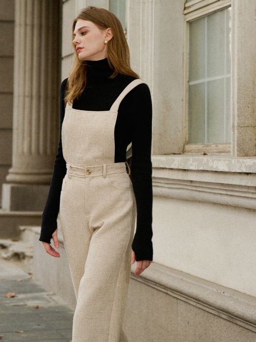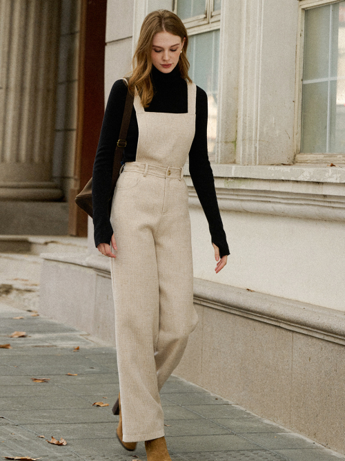 LORNA tweed overall pants_OATMEAL