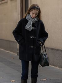 CAEL handmade wool buckle short coat_BLACK