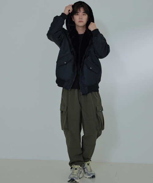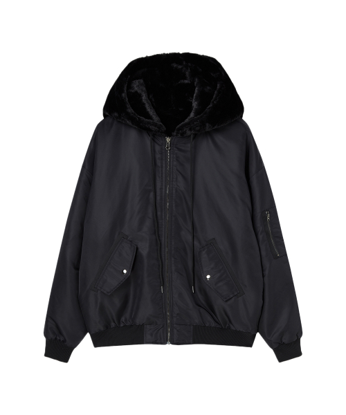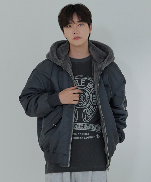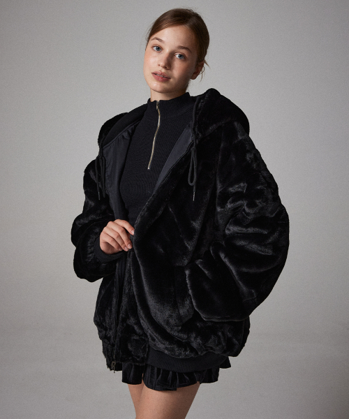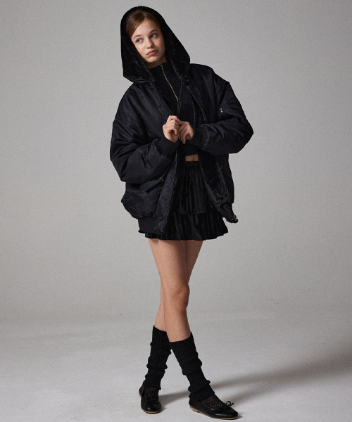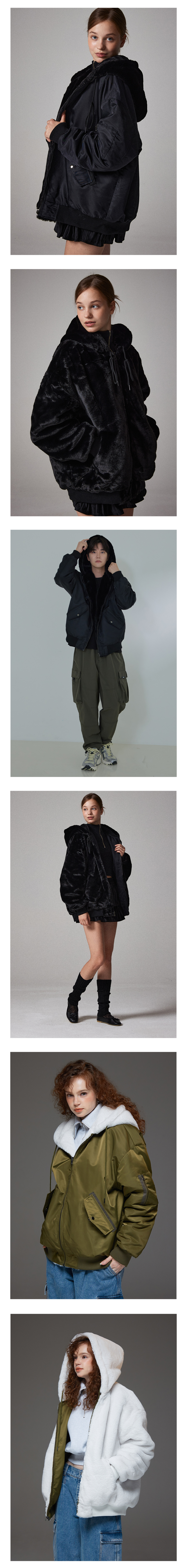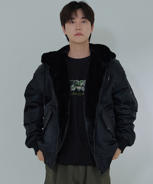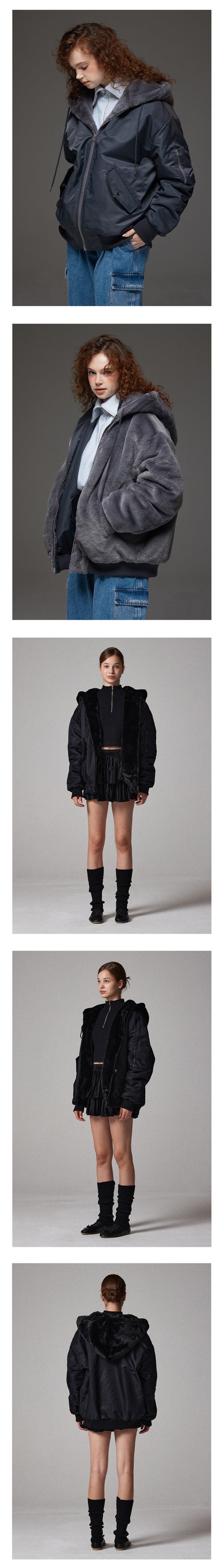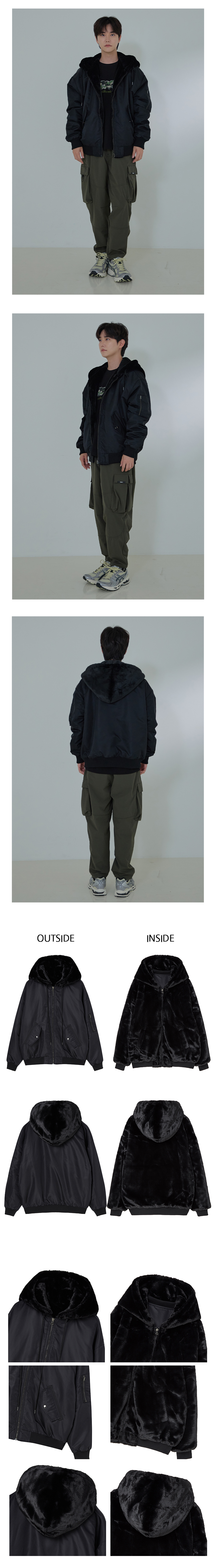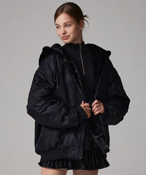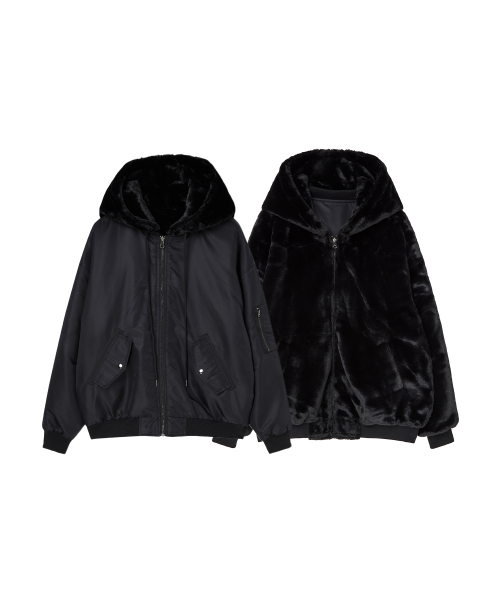 리버시블 밍크 퍼 후드 항공 자켓 블랙