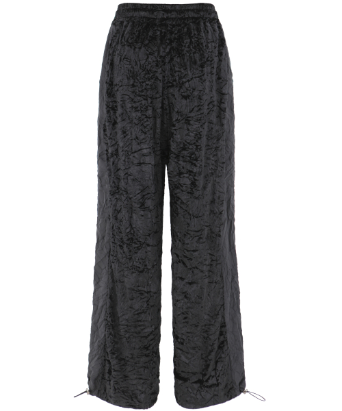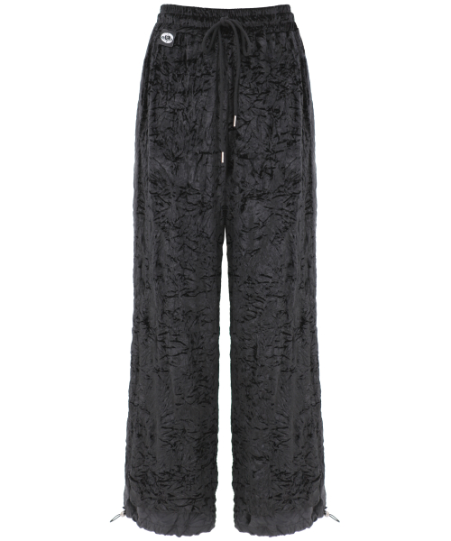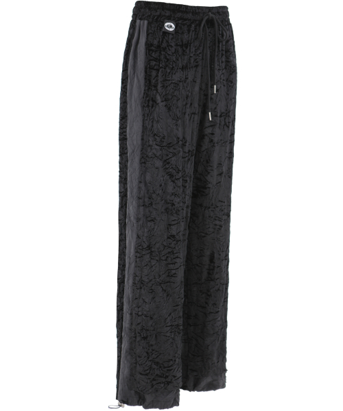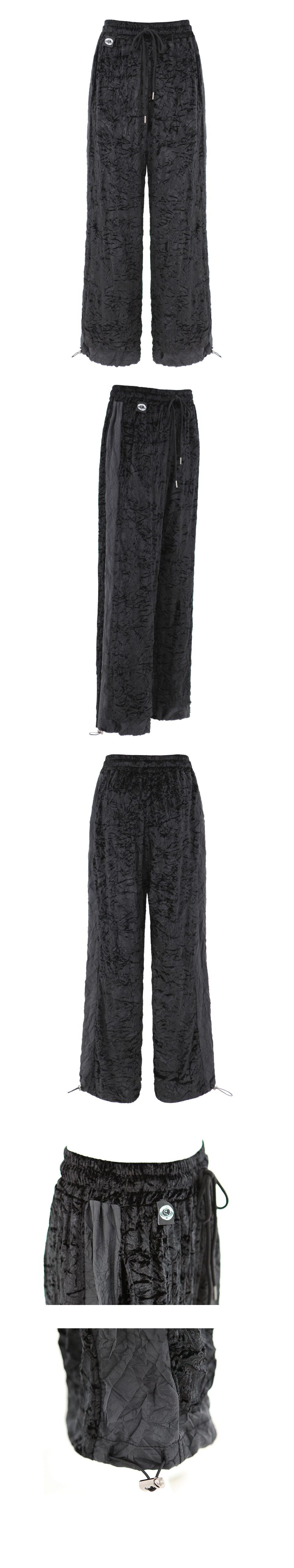 주름 벨벳 밴딩 팬츠. 옆라인과 밑단 배색을 가미한 롱팬츠.