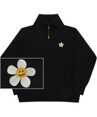 [UNISEX]화이트 플라워 자수 오버사이즈 카라 니트 집업_블랙