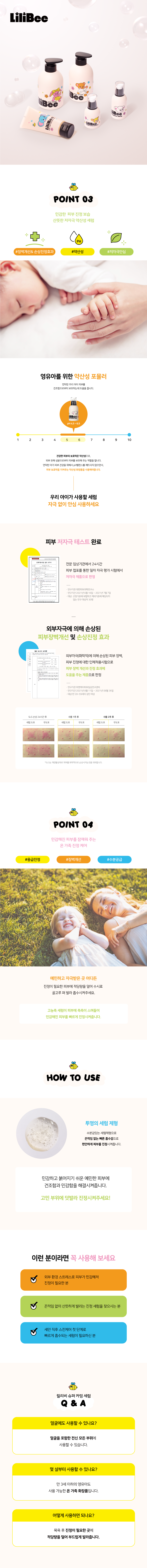 릴리비(LILIBEE)는 내 아이의 피부에 닿는 모든 것을 다루는 브랜드입니다. 소중한 내 아이의 피부에 닿기에 근거에 기반한 원료와 안정성에 집중합니다.
