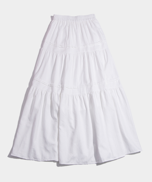 슬림핏 베이직 윈터 티어드 밴딩 롱 캉캉스커트 [화이트]