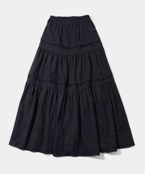 슬림핏 베이직 윈터 티어드 밴딩 롱 캉캉스커트 [블랙]