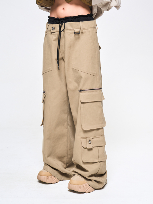 - 오비 부분 레이어드 된 듯한 디자인의 팬츠