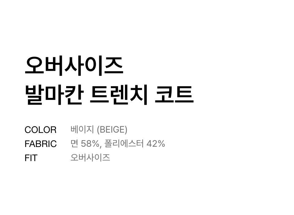 오버사이즈 발마칸 트렌치 코트 [베이지]
