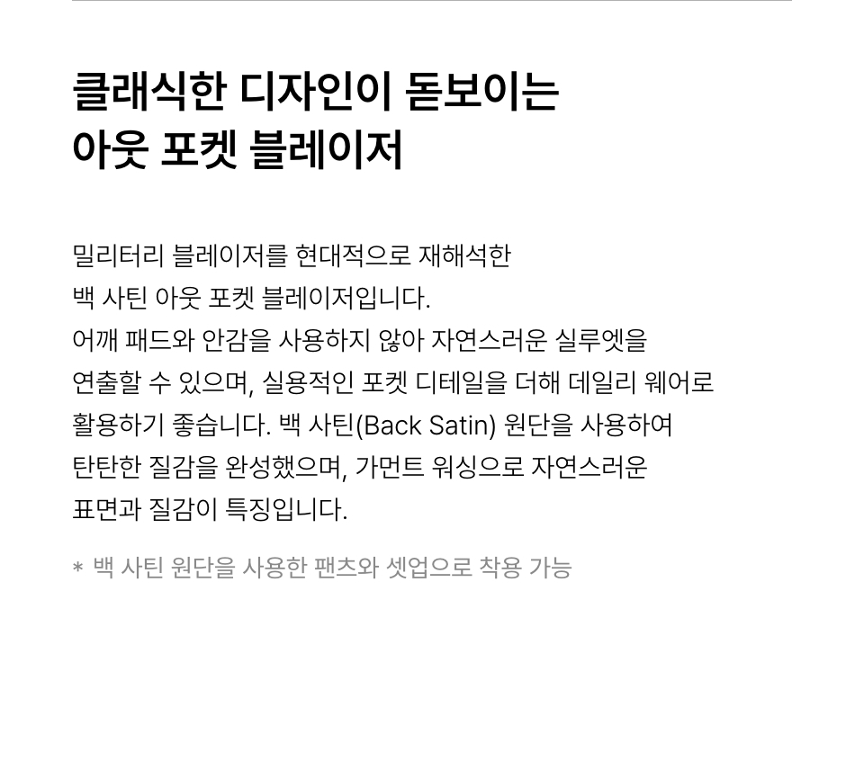 백 사틴 아웃 포켓 블레이저 [네이비]