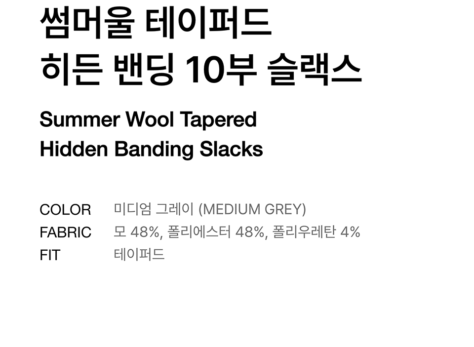 썸머울 테이퍼드 히든 밴딩 10부 슬랙스 [미디엄 그레이]