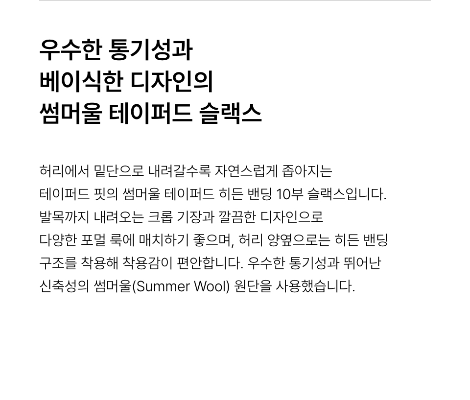 썸머울 테이퍼드 히든 밴딩 10부 슬랙스 [블랙]
