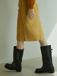 통 부츠와 지퍼 부츠의 경계에 패턴을 잡아 뒷 라인에 지퍼가 있지만