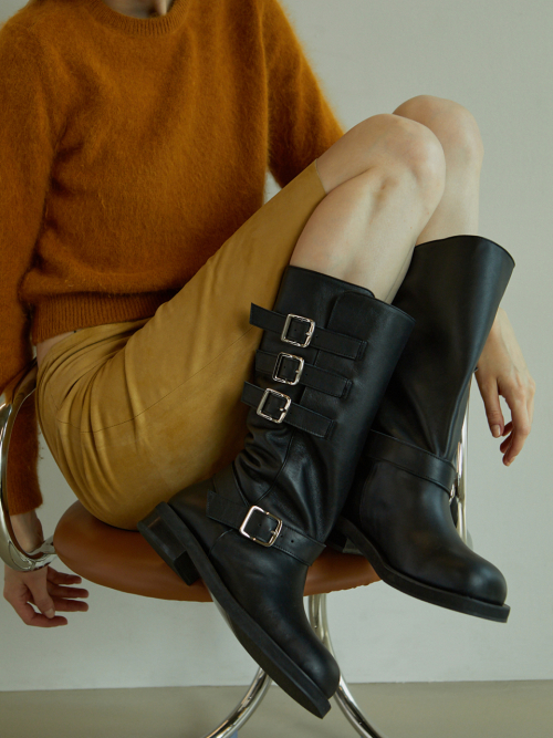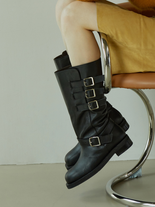 어느 옷차림에나 트리플 버클 바이커 부츠를 신어보세요