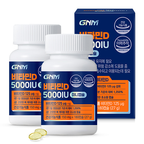 [12개월분] GNM 비타민D 5000IU 미니캡슐 180캡슐 X 2병 / 활성형 비타민디 비타민D3