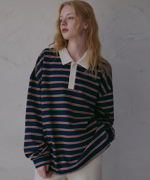 스트라이프 카라 티셔츠-네이비