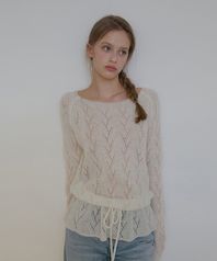 모헤어울 스트링 러플 풀오버-크림