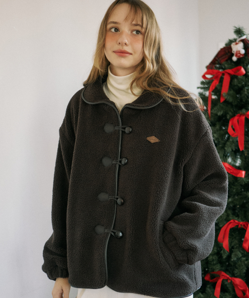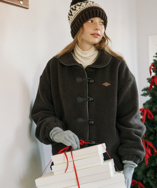 우먼즈 울 블렌드 부클 쇼트 맥 코트 [블랙]