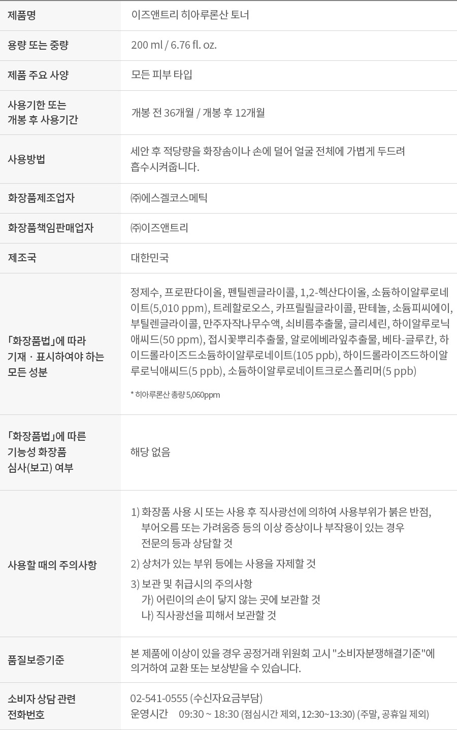 히아루론산 토너 400ml